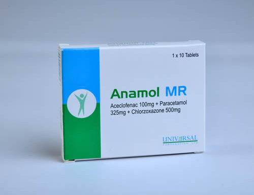 Anamol MR Brand Name: Anamol MR Composition: Paracetamol 325mg + Aceclofenac 100mg + Chlorzoxazone 500mg Tablets Formulation: 1×10’s Tablets Indications: Analgesic and antipyretic for pain and fever relief. Reference: WHO Essential Medicines List.