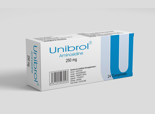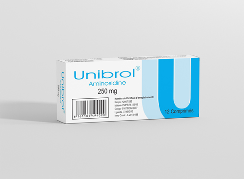 Unibrol Tablets Brand Name: Unibrol Tablets Composition: Aminosidine U.S.P (as Sulphate) TabletsFormulation: 1×24’s , 1×12’s TabletsIndications: Intestinal amebiasis, Giardiasis